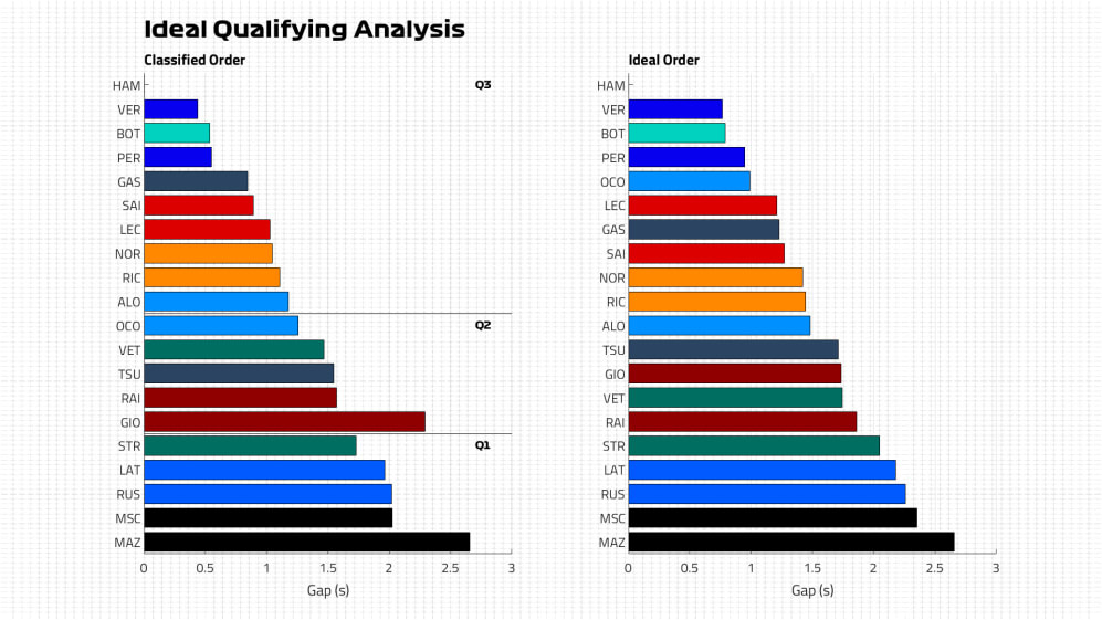 Hamilton bo dirko v najboljšem primeru začel z 6. štartnega mesta, kar pomeni, da bo za uspešen nabor točk najbrž moral prehiteti vsaj enega izmed Ferrarijev ter Gaslyjev Alpha Tauri, kar pa bi se lahko izkazalo za težje od pričakovanega. Spomnimo, da se je Valtteri Bottas na dirki v Mehiki dolgo poskušal prebiti mimo Daniela Ricciarda v McLarnu.